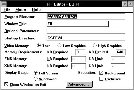 installed into a directory different from "c:\ebv4" or if EB does not run