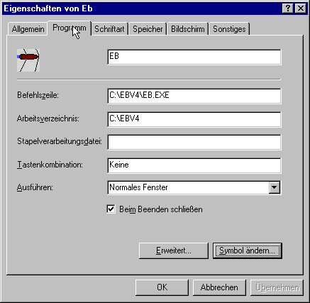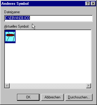 Symbol ändern) and locate EB.ICO (after pressing the <Search>